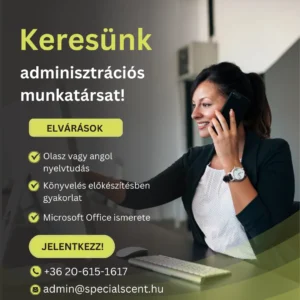 Adminisztrációs munkatársat keresünk a magyar mellett olasz vagy angol nyelvtudással!